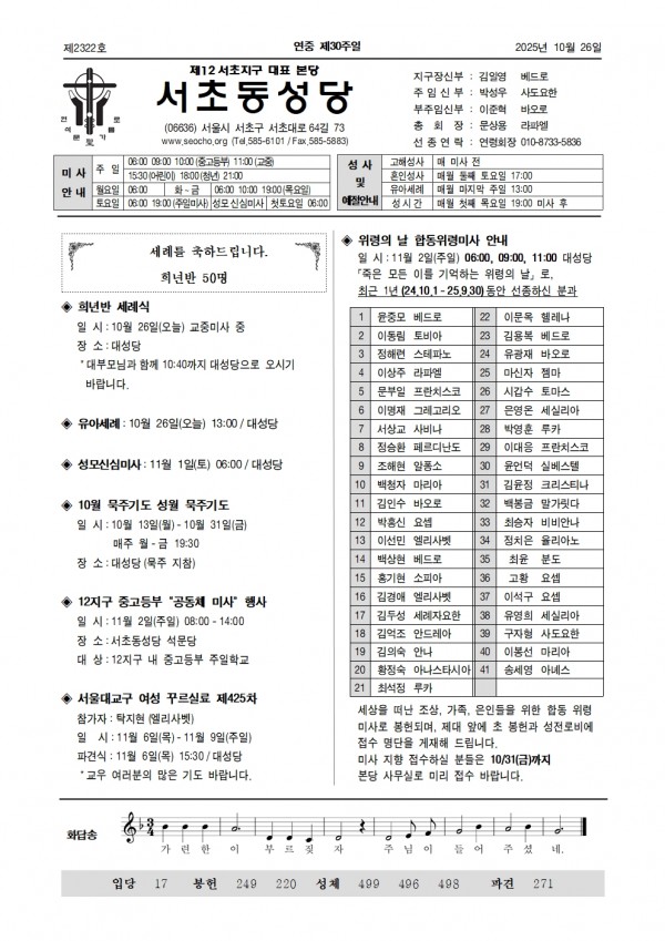 - 다음글연중 제29주일 · 민족들의 복음화를 위한 미사(전교 주일) 25.10.21